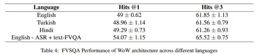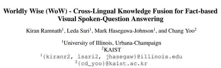 1.论文提出了一个新的基于事实的视觉音频问答任务,并建立了一个数据集FVSQA包含5小时长度的语音数据,覆盖英语,印地语以及土耳其语。2.作者训练了一个直接使用语音信号的端到端问答模型WoW,这是第一个不需要语音识别解析模块的语音知识图谱问答模型