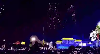 今年5.1的时候,在西安进行了一场大型的无人机灯光表演。