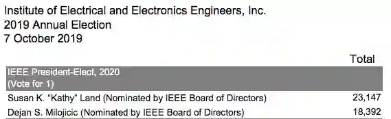与Susan K. “Kathy” Land竞选IEEE下任总主席的是Dejan S. Milojicic,他总共获得18392票,以4755票之差落选。