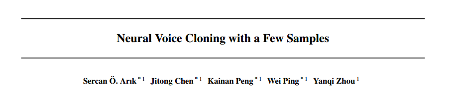 语音复制(voice cloning)是个性化语音接口的非常急需的功能。在此论文中,百度介绍了一种能以少量音频样本作为输入的神经语音复制系统。