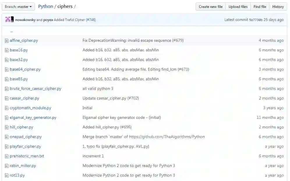 这个项目为大家汇总了Python标准库实现的大部分算法,对于一些神经网络模型也有所涉及。在代码的效率上,该项目的内容可能并没有 Python 标准库那样高效,但是作为一个学习资源还是很值得一读。下面对项目的内容进行一个大概的梳理。为了使得内容更加易读,笔者将该项目中的内容划分为了五个部分。