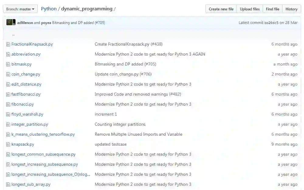 在 dynamic_programming 部分,作者提供了一些常用的动态编程方法,代码主要针对于各类动态编程任务。下图展示了部分代码列表。