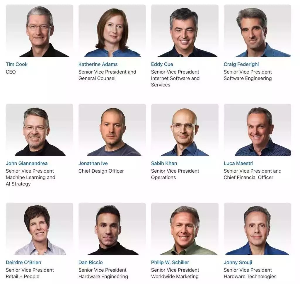 如今,有269名高管在运营苹果,涵盖了硬件、软件、设计、营销、财务、法务、零售、运营、企业发展等关键职能以及安全和通讯团队。