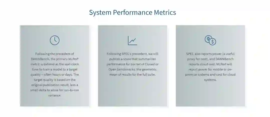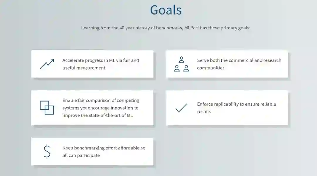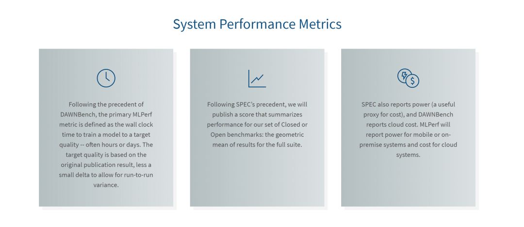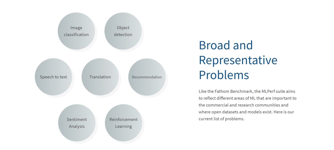 MLPerf的概述是这样的:“The MLPerf effort aims to build a common set of benchmarks that enables the machine learning (ML) field to measure system performance for both training and inference from mobile devices to cloud services. We believe that a widely accepted benchmark suite will benefit the entire community, including researchers, developers, builders of machine learning frameworks, cloud service providers, hardware manufacturers, application providers, and end users.”