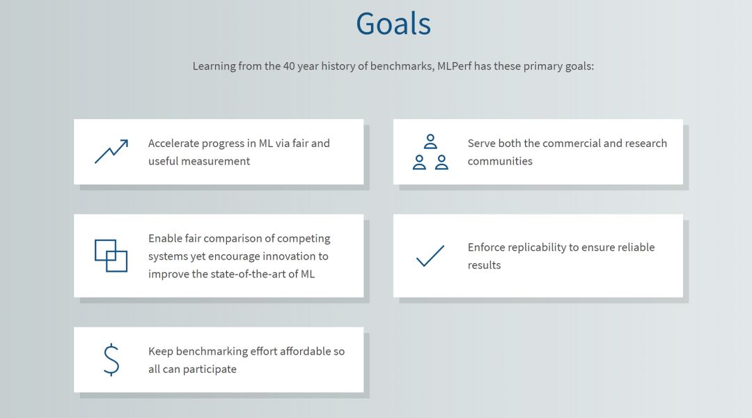 而MLPerf的目标(如下图)基本上和传统的Benchmark类似。