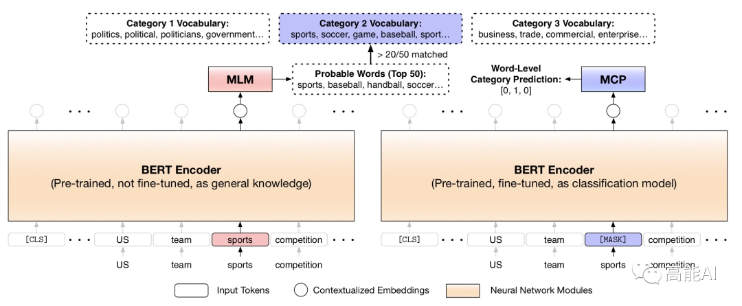在做文本分类的时候,我们可以根据标签名称联想到与之相关联的其他关键词,这些关键词代表其类别。当然,这就需要我们从一个蕴含常识的模型去理解每个标签的语义。很明显,BERT等预训练LM模型就是一个首选!