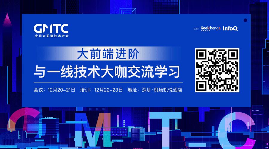 除了付嘉兴老师的分享,本次 GMTC 我们还设置了小程序挑战与应对、音视频技术、Serverless 实践、前端测试与安全、大前端工程化、Flutter 实战、新兴编程语言、团队建设与管理等热门技术专场,目前大会 9 折购票,点击「阅读原文」了解大会日程。有任何问题欢迎联系票务鱼丸:13269078023(微信同号)