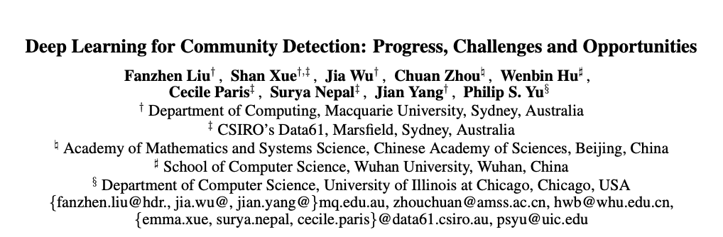 今年已过半,AI 科技评论携手各大高校、企业研究机构为大家带来了100多场顶会论文直播,包括 AAAI、ICLR、ICML、CVPR、ACL、KDD、ECCV 等一系列 AI 学术顶会。如今,我们又将迎来 IJCAI 2020 的首场论文直播!本场直播的主题是:“社区发现的深度学习方法:进展、挑战、机遇”。论文由数据挖掘领域大牛 Philip S. Yu 携手悉尼麦考瑞大学、澳大利亚联邦科学与工业研究组织Data61部门、中国科学院、武汉大学的研究者共同完成。论文地址:https://www.ijcai.org/Proceedings/2020/693社区发现(Community Detection),简单来说就是从网络 G 中发现社区集合 C。该网络指的是一种特殊的图,对现实世界中的系统(例如,互联网、学术合作网络以及社交群组)中的复杂关系进行了抽象。社区发现作为网络科学领域中一个经久不衰的重要问题,随着深度学习时代的到来,该领域的研究者也逐渐从传统的统计推断(例如,随机分块模型)和传统机器学习(例如,谱聚类)方法中解放了出来。深度学习因其处理高维图数据的强大能力,能极大地提升了社区发现的性能。近五年来,用于社区发现的深度学习方法,被广泛地研究。那么,深度学习时代的社区发现工作有哪些特点,研究者们遇到了哪些挑战,有哪些前景光明的研究方向呢?Philip S. Yu 团队在这篇论文中,不仅全方位地回顾了模型和算法研发方面相应的技术趋势,并详细阐述了基于深度学习领域的社区发现进展,还指出了将深度学习用于社区发现任务时存在的七个重大挑战——这在一定程度上将为下一代社区发现研究指明方向。对于社区发现领域的研究者而言,这篇顶会综述文章非常值得一读。8月12日晚19点,AI 科技评论特意邀请到了论文一作——悉尼麦考瑞大学的博士研究生刘凡桢带来首场 IJCAI 系列直播,对这篇文章进行深度解读!另外,跟数据挖掘领域大牛 Philip S. Yu合作又是一种什么体验呢?刘凡桢也能跟大家分享分享在跟 Philip S. Yu 合作的经历和故事哦~机会不容错过! 分享主题:社区发现的深度学习方法:进展、挑战、机遇分享嘉宾:刘凡桢,悉尼麦考瑞大学博士研究生。分享时间:2020年8月12日晚19:00(悉尼时间晚21:00)