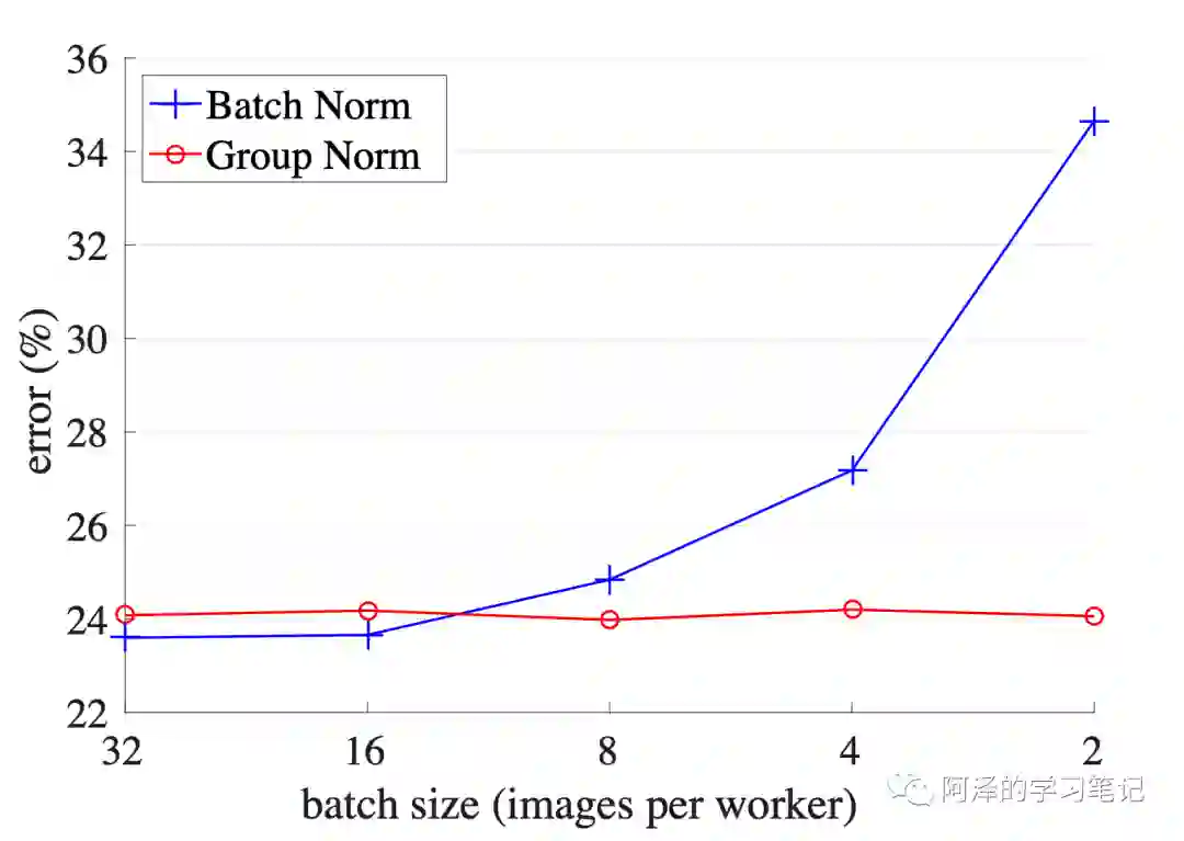 在大型任务中,计算力不足以支撑起很大的 batch size,此时的 batch size 可能只有 2、4,在这种情况下 BN 的效果会非常差。