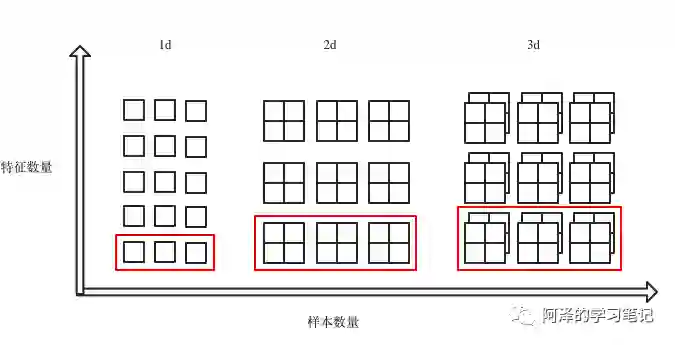 batch_size 为样本数量,feature_size 为每个样本的特征数量,(n)d_feature 为一个特征的维度。下图展示了三种 BN 的区别。