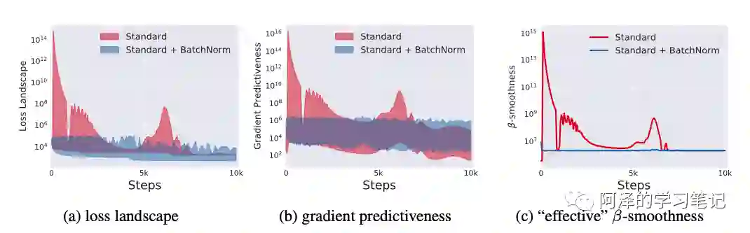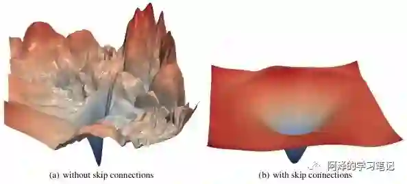 作者指出,BN 和 ResNet 的作用类似,都使得 loss landscape 变得更加光滑了: