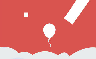 1、游戏开始,会出现一个持续上升的气球,玩家的任务则是保证气球在上升途中不会被障碍物戳破。(如图:屏幕中间有白色气球,白色圆圈为“盾牌”,黑色方块为障碍物)