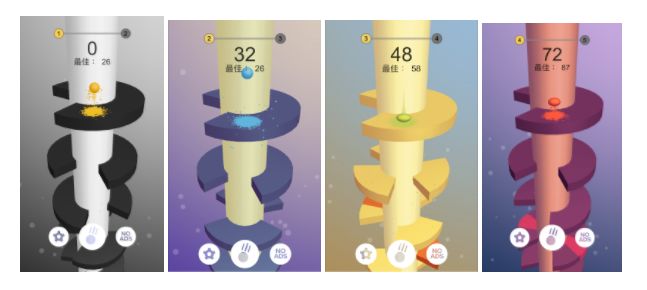 2、多种场景颜色主题。 每一个关卡小球和主题背景色都会变换。也避免了玩家的审美疲劳。