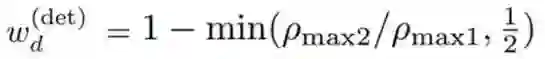还有CSR-DCF的空域可靠性,也用了两个类似指标反映通道可靠性, 第一个指标也是每个通道的最大响应峰值,就是Fmax,第二个指标是响应图中第二和第一主模式之间的比率,反映每个通道响应中主模式的表现力,但需要先做极大值检测: