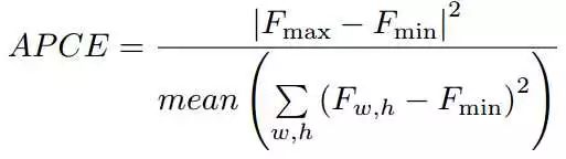 高置信度更新,只有在跟踪置信度比较高的时候才更新跟踪模型,避免目标模型被污染,同时提升速度。 第一个置信度指标是最大响应分数Fmax,就是最大响应值(Staple和LCT中都有提到)。 第二个置信度指标是平均峰值相关能量(average peak-to correlation energy, APCE),反应响应图的波动程度和检测目标的置信水平,这个(可能)是目前最好的指标,推荐:
