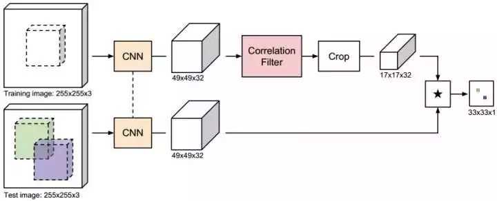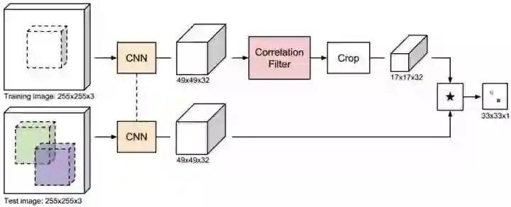 最后是来自Luca Bertinetto的CFNet (http://t.cn/RXE9i5P),除了上面介绍的相关滤波结合深度特征,相关滤波也可以end-to-end方式在CNN中训练了: