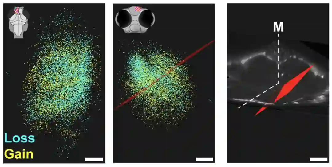 为了让这个过程可视化,科学家们通过基因工程让斑马鱼产生神经元,并加入了一种标记蛋白,能够在显微镜下观察到荧光: