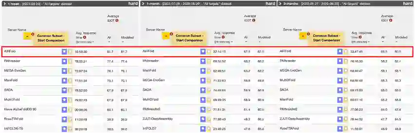AIRFold 在最近一个月(7.23-8.20)的评估中连续四周全球第一,并在系统响应时间上远远领先其他团队
