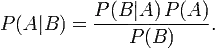 接着,上式两边同除以P(B),若P(B)是非零的,我们便可以得到贝叶斯定理的公式表达式: