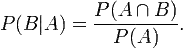 根据条件概率的定义,在事件B发生的条件下事件A发生的概率是