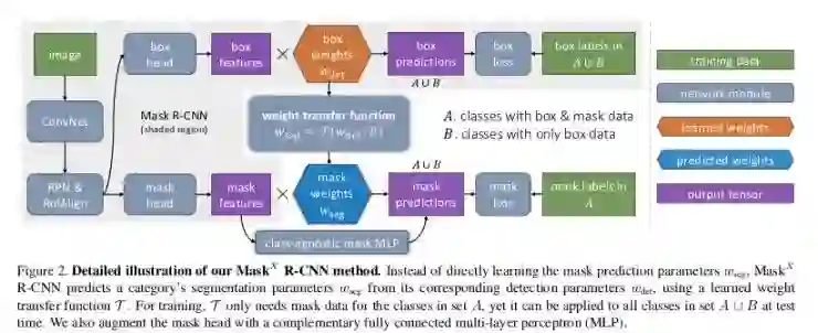 谈到第四篇论文啦,这也是一篇非常酷的论文。正如人们能想到,在边框和分割注解领域上并没有太大的区别,只是后者比前者精确得多。所以,因为我们在 Visual Genome [9]数据集中有 3000 个类,为什么不利用它来给出分割输出。这就是他们所做的,这可以称为弱监督(或弱半监督)学习,你没有完全监督你试图完成的任务。它还可以与半监督相关联,因为它们使用 COCO + Visual Genome 数据集。分割标签以及边框标签。这篇论文是迄今为止最酷的。
