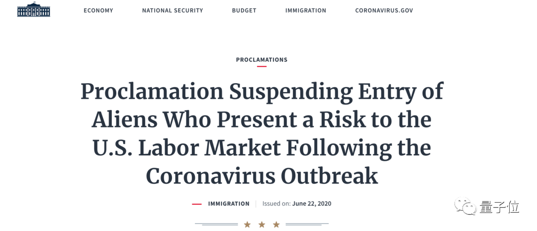 关于这项禁令,是特朗普在美国时间6月22日所签署的,成为了当时阻断外国人使用工作签证进入美国工作的最大动作。
