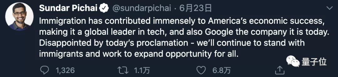 作为一名前H1B签证持有者,我对所有受影响的家庭表示同情。