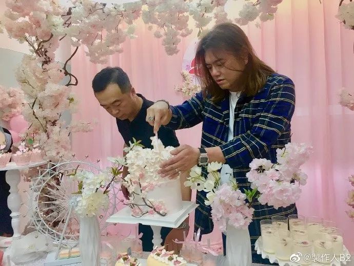 B2在北京成立了自己的公司,图为B2在公司的生日会上切蛋糕。图/ 制作人B2新浪微博