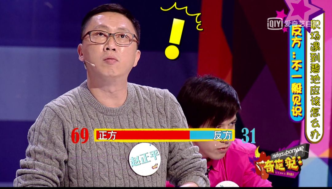 赵正平在《奇葩说》上作为反方辩手表现不佳,节目实时投票中,正方取得了压倒性优势。图/ 《奇葩说》