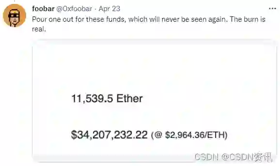 加密货币开发商foobar发推表示,锁定的以太币无论是个人还是开发商,都将无法取出。