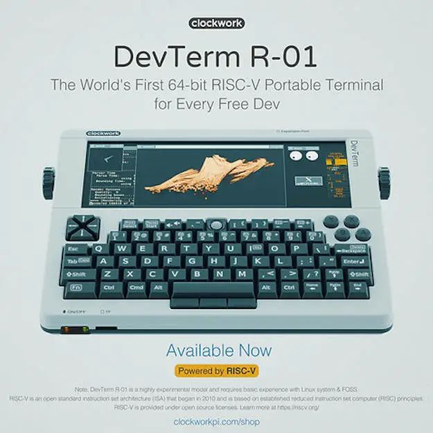 来自Clockwork Pi的新款DevTerm便携式计算机,由RISC-V开源处理器提供支持。图源:DevTerm
