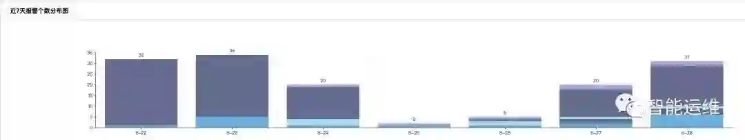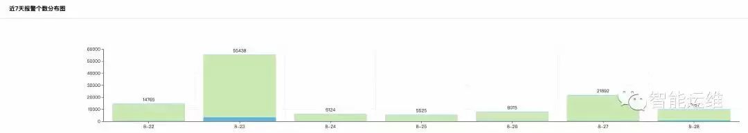 下面两张截图是我挑选的两个团队一周报警数的对比图,前者的单日报警量最高是 55348 条,后者单日的报警量最高为 34 条,两者相差 1600 倍,而前者才是国内很多互联网运维团队的真实写照。