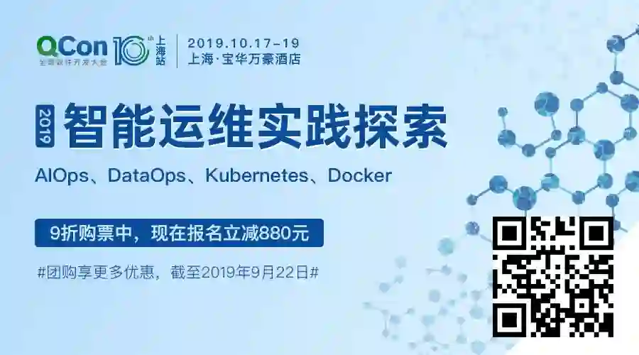 点击「阅读原文」或识别二维码来QCon上海2019了解智能运维相关的领域,包括前沿技术及其最佳落地实践。大会 9 折报名中,立减880元,有任何问题欢迎联系票务小姐姐Ring:17310043226(微信同号)