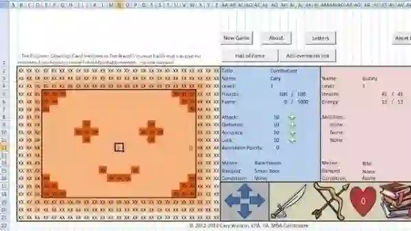 这款做在Excel上的游戏也不简单,游戏的内容包括:2000多个不同能力的敌人、1000多个组合和属性的随机项目、4种不同结局、8个大Boss、31种法术、还有37个成就……简直令人大开眼界。