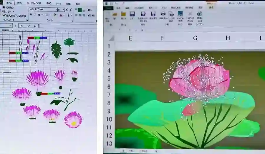 当他知道Excel还能制作人物绘画时,他就确信,这种技术对于他这种没有接触过电脑的人来说将是一个机会——可以同时享受学电脑的乐趣与学会绘画。