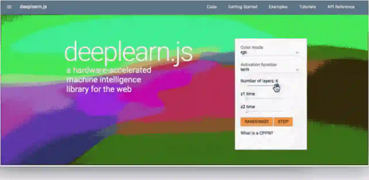 我们发布了一系列演示视频,表明deeplearn.js的实际运行。试一试实时使用网络摄像头的图像分类器,观察网络如何内部表示它看到的画面。或者以每秒60帧这一流畅的速度,生成抽象艺术视频。deeplearn.js主页(https://pair-code.github.io/deeplearnjs/)含有诸如此类的演示视频。