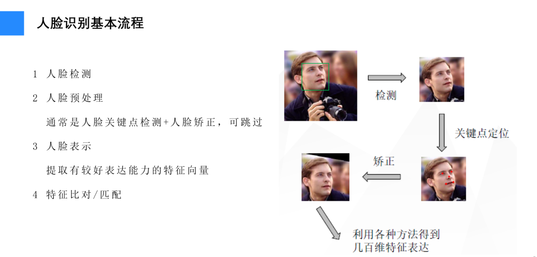一个人脸识别系统的基本流程:人脸检测-预处理-人脸表示-匹配