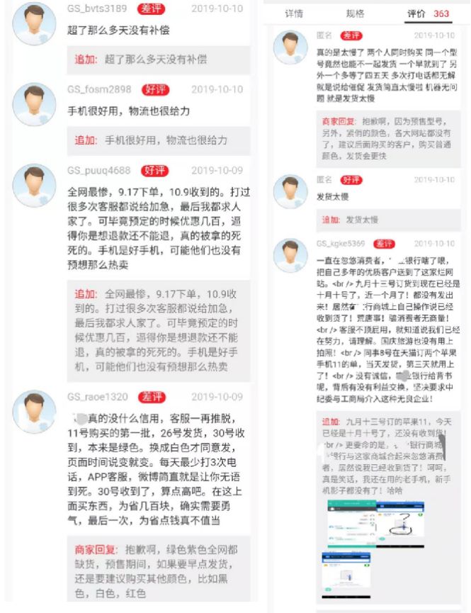 但便宜真不是那么好占的,我们随手打开一个银行信用卡商城,iPhone 11 64G 版本仅售 5098元,还注明 24 期免息,看起来十分便宜。不过,随便翻一下评价,都在吐槽发货慢,新机到手动辄需要半个月,过程中还可能出现各种问题。而且,