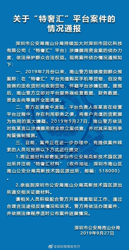 售价虽然便宜,消费者却收不到货也无法退款,而且这样的情况不在少数,据称,这次事件涉及的金额已经达到 2.5 亿元,深圳市公安局也开始对特奢汇相关案件进行侦查。