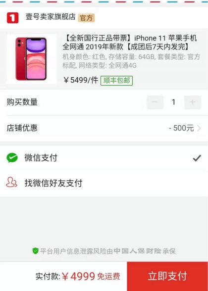 自从去年不停刷新 iPhone 的底价之后,大家都期待拼多多今年也能带来惊喜,不负众望,新款 iPhone 在拼多多的价格也依然诱人。以 iPhone 11 为例,官网售价 5499元的 64G 版本,在拼多多领取 500元的优惠券,实际售价已经不到 5000元。