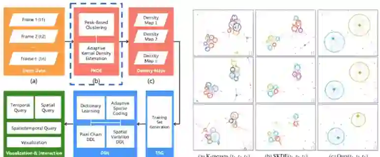 针对该工作,李晨辉老师首先介绍了一种基于峰值的核密度估计方法来生成时空数据的数据分布。然后介绍了一种新的密度字典学习方法来压缩时间密度图并加速查询计算,主要工作流程如图8所示。DDLVis提供了各种直观的查询交互,以交互方式获得模式。
