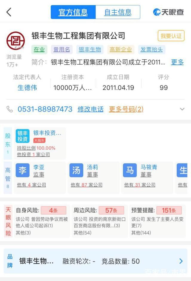 直到2004年7月,银丰集团才注册成立山东齐鲁干细胞工程有限公司,跨界进军生物医疗领域。该公司即为银丰生物工程集团有限公司的前身。银丰集团官网介绍,银丰生物主要从事人体细胞、组织、器官存储、基因测序技术、细胞技术研究和临床应用等高新技术开发。投资领域包括脐血储存、基因检测、细胞治疗、美容保健、天使医生(母婴监护健康管理平台)、低温医学。