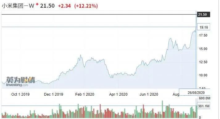 这也刺激了小米次日的股价。8月27日开盘,小米集团港股股票一度大涨超过7%,达到20.85港元,这也是今年的最高价。