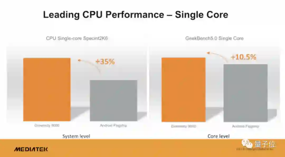 在性能方面:较现有的安卓芯片提高35%,在Geekbench5.0上单核表现提高10.5%: