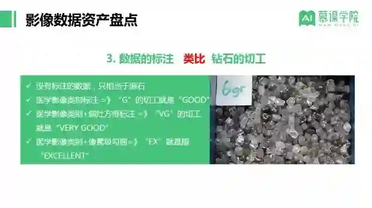 颜色越纯、净度越高的钻石,价值也就越高。对于医学影像数据来说,它的价值也取决于其干净、规范、清晰和标准化的程度。如果是从胶片、PACS系统和诊断报告中翻拍而来的数据,必然会包含一些杂质,其价值将大打折扣。吴博指出,高质量的数据需要是Raw Data,比如mhd格式的DICOM影像和openslide病理图像。