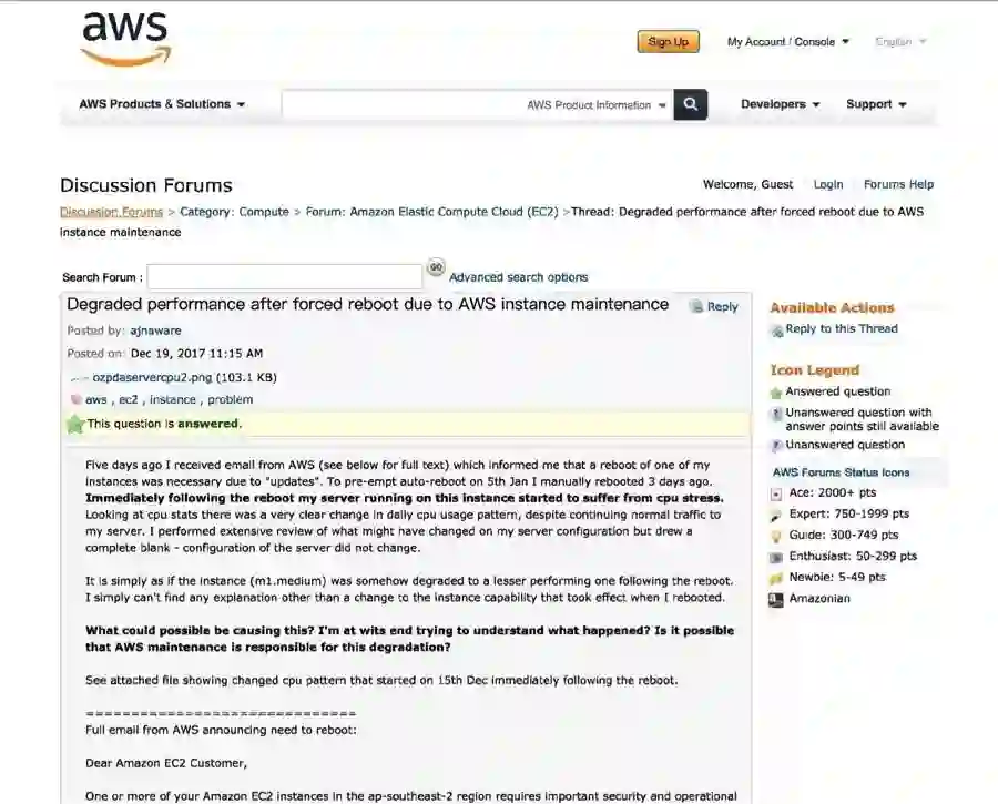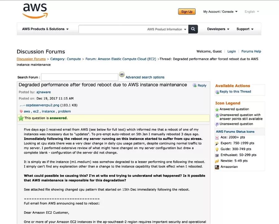 在 AWS 的 EC2 产品交流论坛上用户抱怨着漏洞修复带来的性能下降情况: