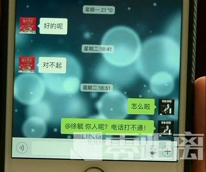 6月5号傍晚,徐毓突然在一家三口的群里发了一条微信“对不起”,之后便失去了联系。