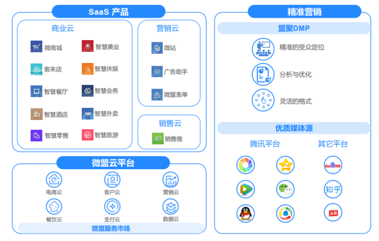 微盟聚焦去中心化的智慧方案,为企业提供SaaS及精准营销、广告投放服务。