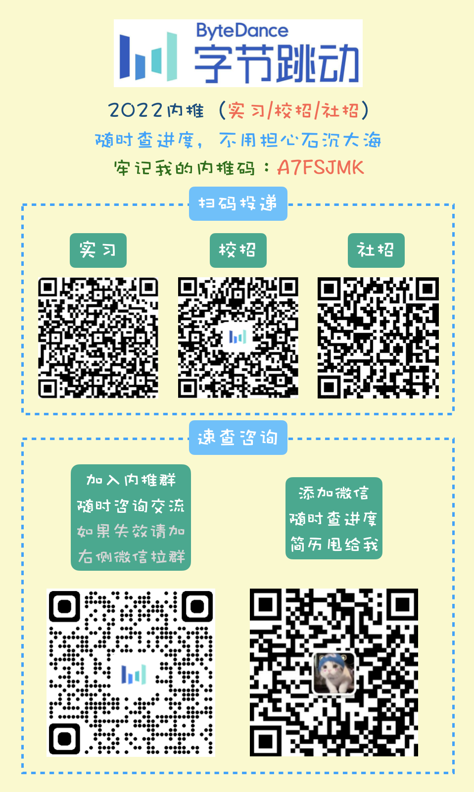 「刷完下面这些题目,足够你应付99%的笔试面试了!」想来字节的同学不要错过这次研发提前批,「8月1日」就截止了: