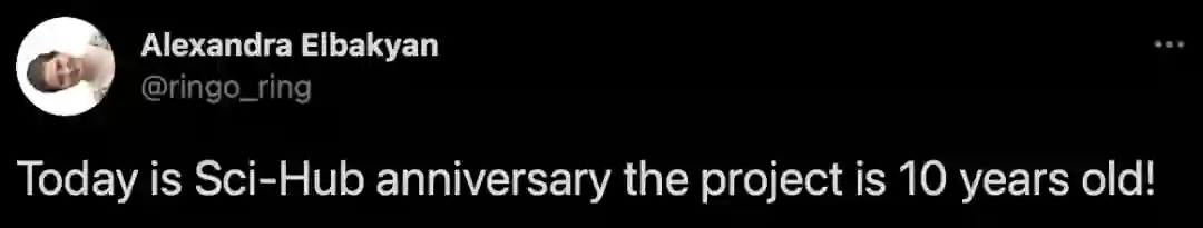 为了庆祝10周年纪念日,Alexandra Elbakyan表示自己将在Sci-Hub放出超过